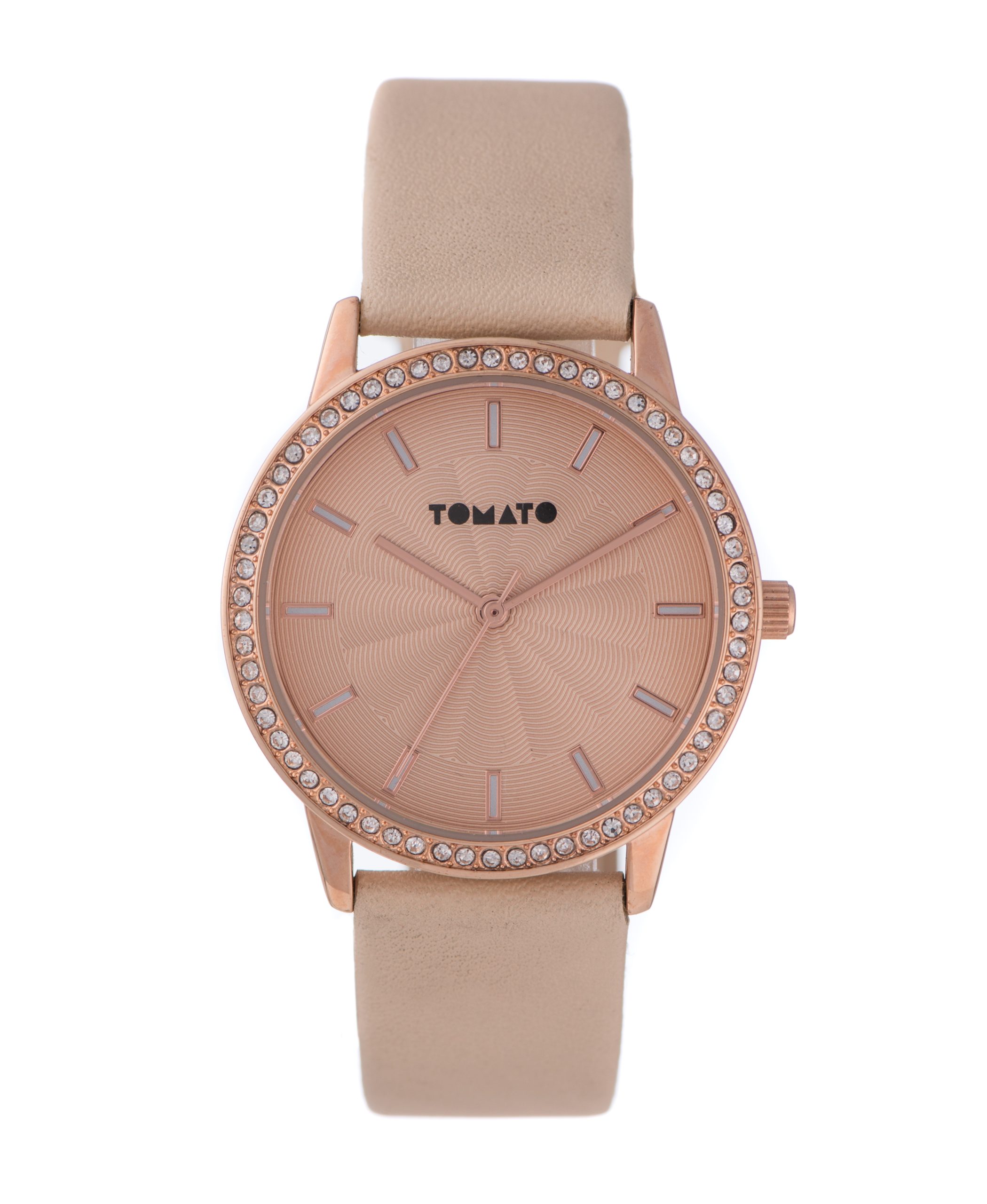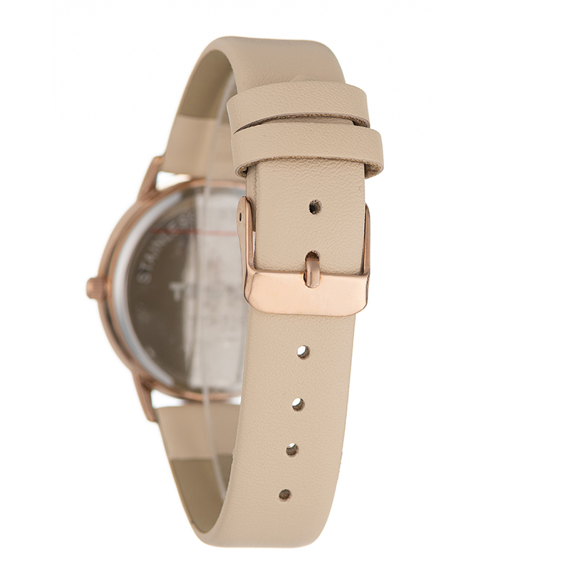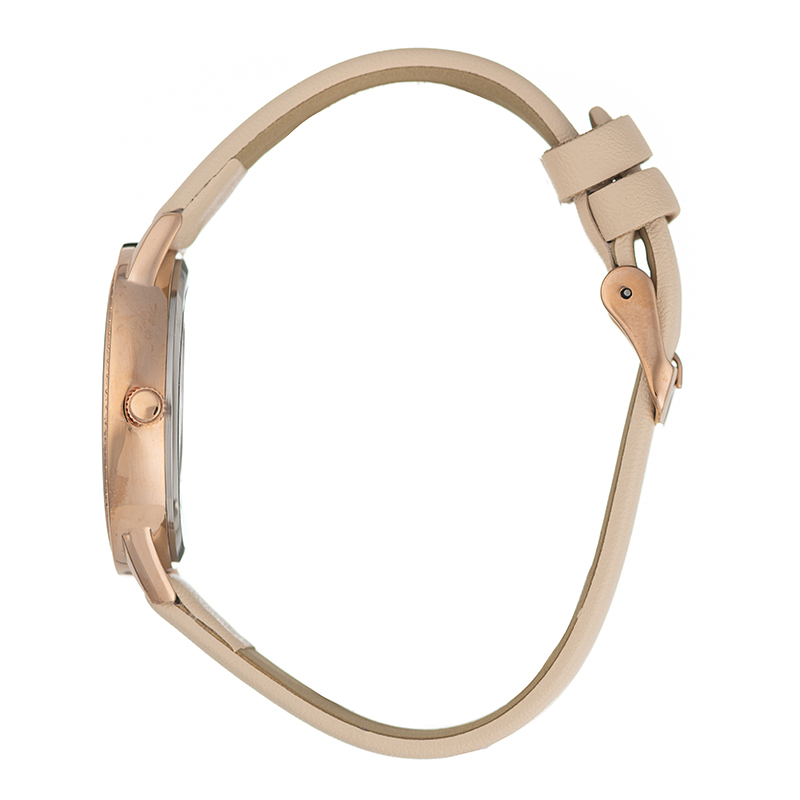 With a delicate rose-gold case and subtle crystal accents, the Brinn delivers timeless beauty in a refined package. Its nude leather-look strap and soft pink dial make it a versatile piece for every wardrobe.