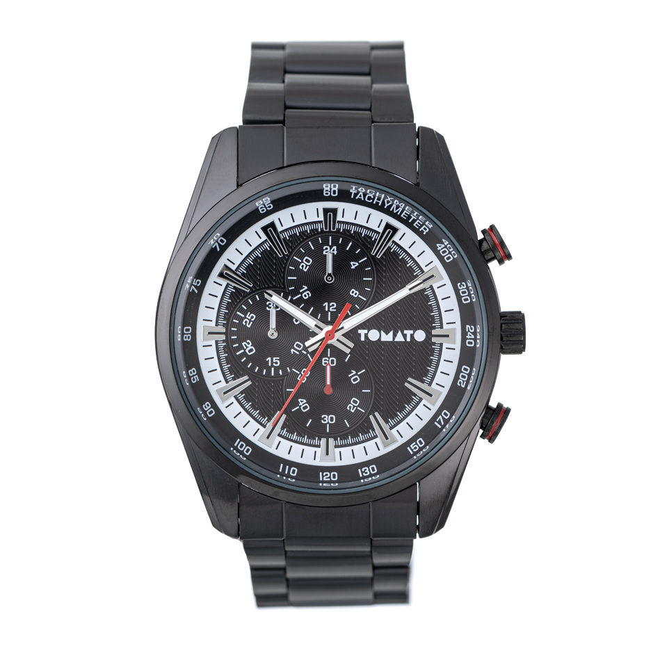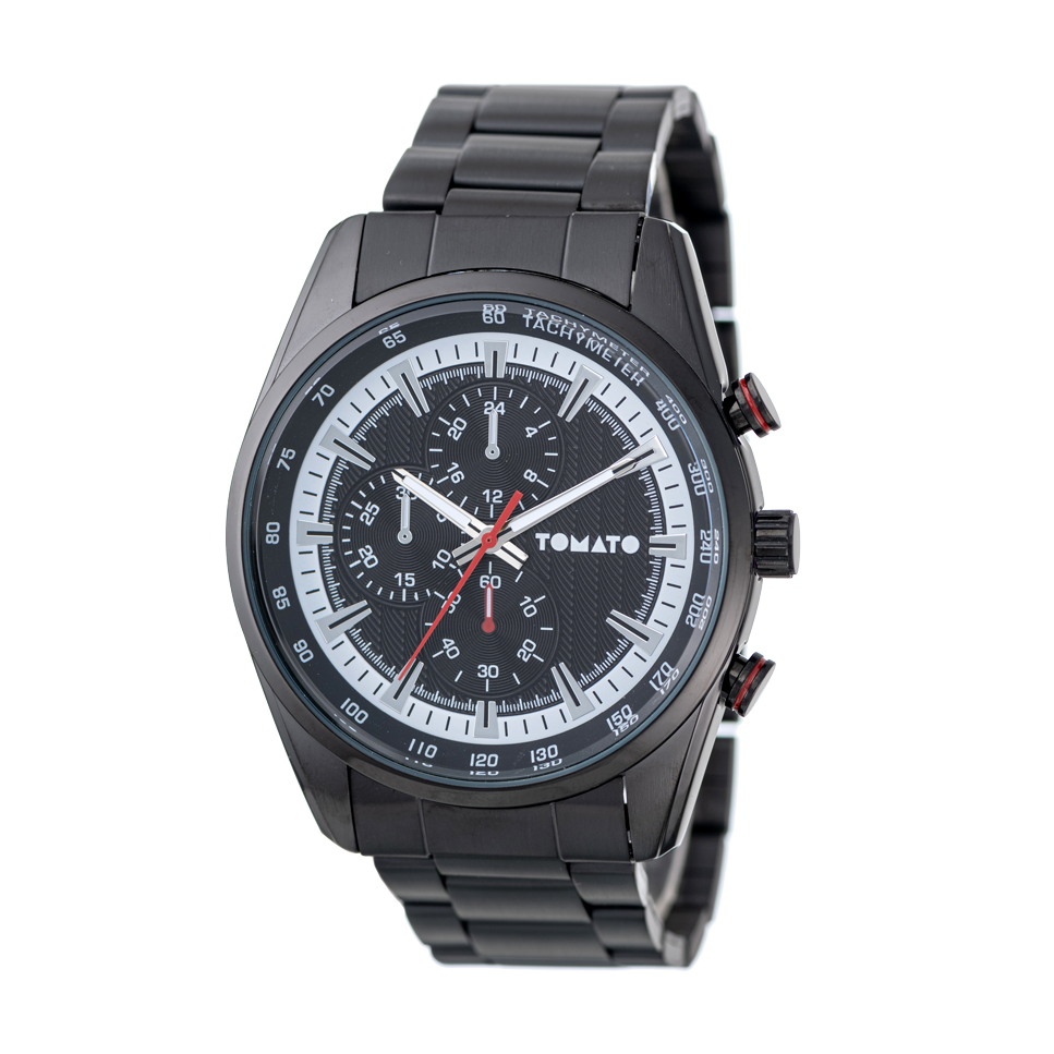 The Cole watch delivers high-performance style with a modern edge. Featuring a black bracelet design, precision chronograph dial, and red detailing, it’s built for those who want bold design with everyday versatility.