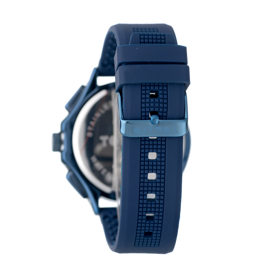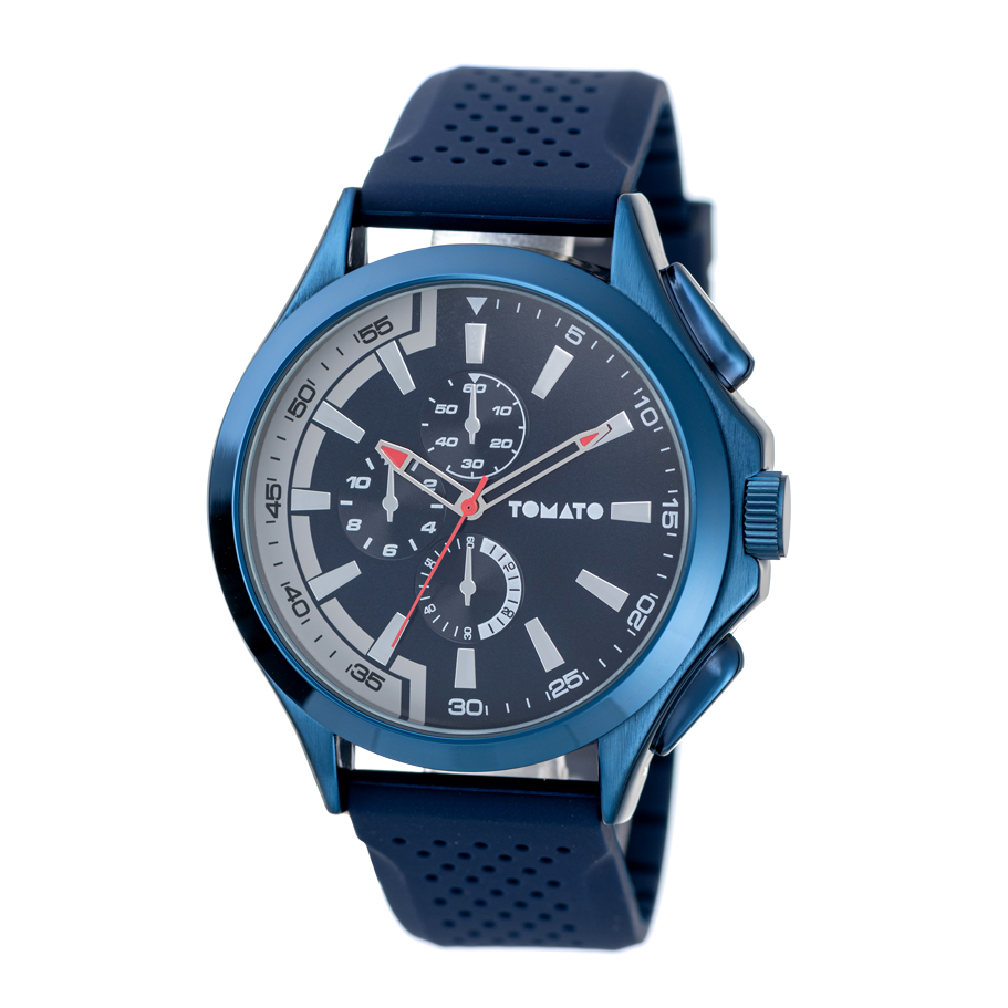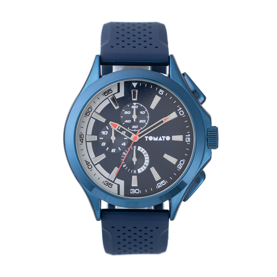 Sporty and stylish, the Lucky watch is built with a comfortable blue perforated strap and a sleek black dial. Its chronograph sub-dials and bezel make it perfect for those who value both design and function.